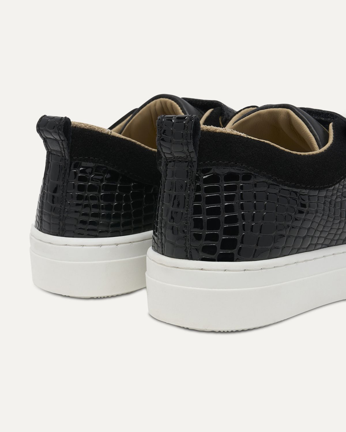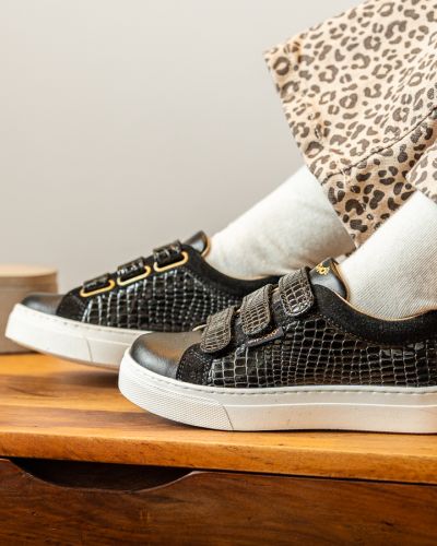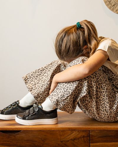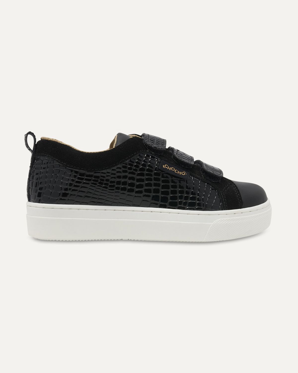 ChoCho La Petite Croco – Ébène , précieusement façonnée à la main dans un cuir de vachette pleine fleur éco-tanné, allie souplesse et robustesse. Son bout dur et son antiglissoire veillent sur les petits pieds en mouvement, offrant protection et confort au fil du temps. Sa doublure en cuir, douce et respirante, enveloppe délicatement le pied, tandis que sa première de propreté en cuir moussé Cléopâtre, associée à une semelle au design unique, accompagne chaque pas avec légèreté, favorisant un développement naturel et harmonieux